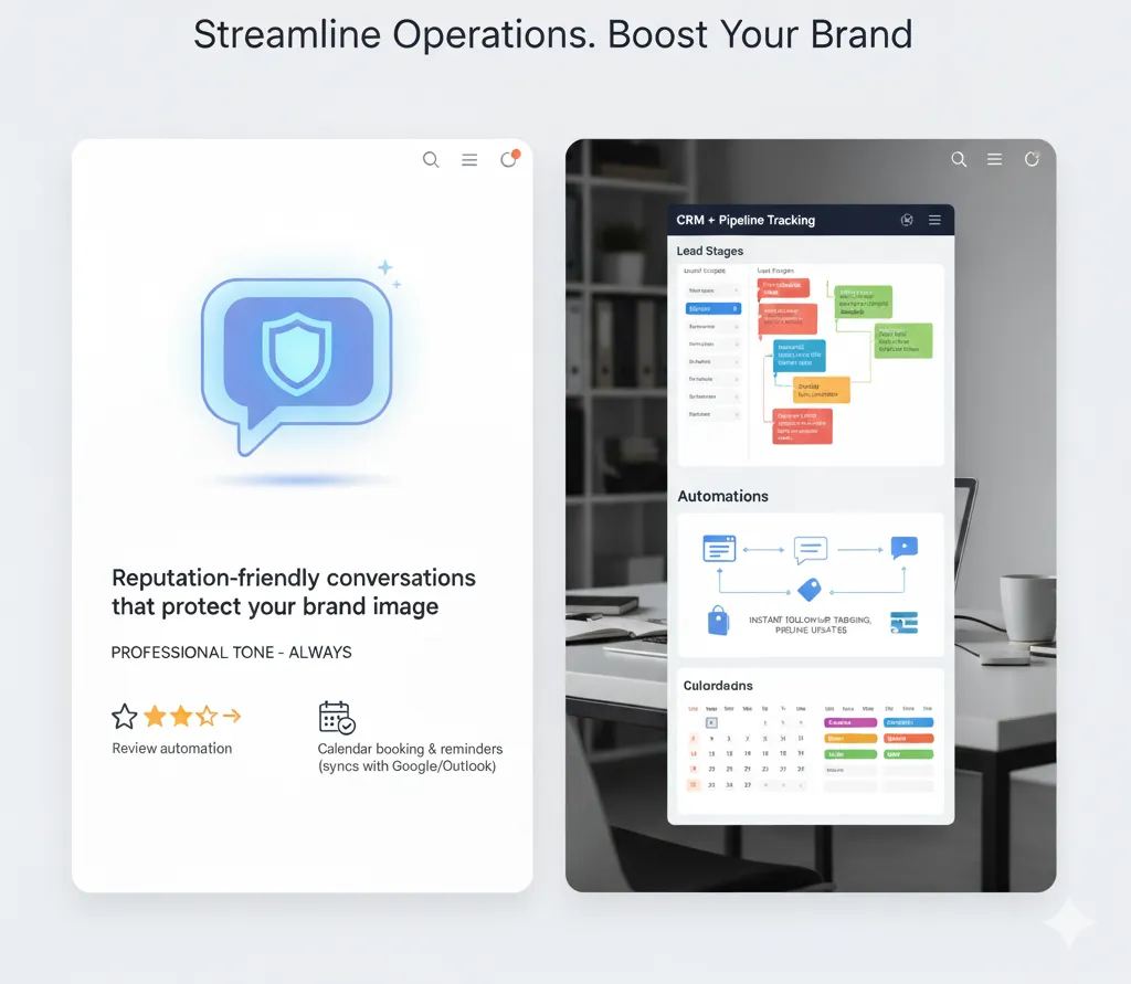 • CRM, automations, call/text tools, appointment scheduling, follow-up workflows